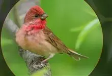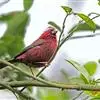 酒红朱雀小型鸟类,体长13~15厘米。雄鸟通体深红色,头部深朱红或棕红色,下背和腰玫瑰红色,眉纹粉红色而具丝绢光泽。两翅和尾黑褐或灰褐色、具暗红色狭缘,内侧两枚三级飞羽具淡粉红色先端。…全部>>