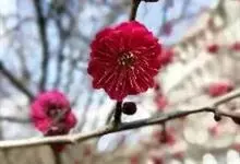 宫粉梅 Rehd.)是蔷薇科、李属植物,梅花品系中真梅系直枝梅类宫粉型,其花复瓣至重瓣,呈或深或浅的红色。落叶乔木,高达10米。树干褐紫色,有纵驳纹,小枝细而无毛,多为绿色。叶广卵形至卵形,…全部>>