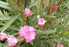 夹竹桃,又名红花夹竹桃、欧洲夹竹桃,是夹竹桃科夹竹桃属的一种常绿直立大灌木,枝条灰绿色,含水液。叶披针形,3叶轮生。聚伞花序顶生,花冠粉红至深红色,花冠漏斗状,有特殊香味。蓇葖果,圆柱形。种子长圆形,…全部>>