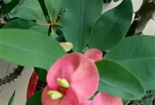 铁海棠为大戟科大戟属蔓生灌木植物;茎多分枝,具纵棱,呈旋转状;叶互生,通常集中于嫩枝上;每个花序基部边缘具微小的红色尖头;苞叶先端圆且具小尖头,无柄,上面鲜红色,下面淡红色;苞片丝状;子房光滑无毛,…全部>>