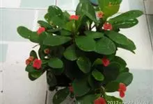 虎刺梅:别称铁海棠,是蔓生灌木植物。茎多分枝,长60-100厘米,直径5-10毫米,具纵棱,密生硬而尖的锥状刺,刺长1-1.5厘米,直径0.5-1.0 毫米,常呈3-5列排列于棱脊上,呈旋转。叶互生…全部>>