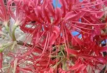 石蒜[学名:Lycoris radiata Herb.],是石蒜科石蒜属的多年生草本植物,别名彼岸花、红花石蒜、死人花、蟑螂花、龙爪花等。石蒜的叶狭带状,中间有粉绿色带,秋季出叶。伞形花序,花鲜红色。…全部>>