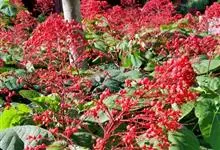 赪桐 Sweet)是唇形科、大青属灌木,高1-4米,叶片圆心形,顶端尖或渐尖,基部心形,边缘有疏短尖齿,表面疏生伏毛,二歧聚伞花序组成顶生,大而开展的圆锥花序,花序的最后侧枝呈总状花序,花萼红色,…全部>>
