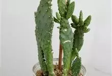 胭脂掌 Mill.)仙人掌科肉质灌木或小乔木,高2-4米,圆柱状主干直径达15-20厘米。分枝多数,椭圆形、长圆形、狭椭圆形至狭倒卵形,无毛,暗绿色至淡蓝绿色;小窠散生,不突出。叶钻形,绿色,早落。…全部>>