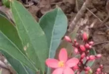 变叶珊瑚花,是大戟科麻风树属常绿灌木。变叶珊瑚花单叶互生,倒阔披针形,叶面为浓绿色,叶背为紫绿色,叶柄具茸毛,叶面平滑,常丛生于枝条顶端;花单性,雌雄同株,花冠红色或粉红色,雌、雄花不同时开放;具乳汁,…全部>>