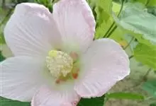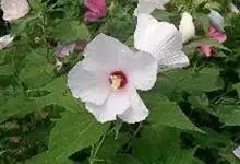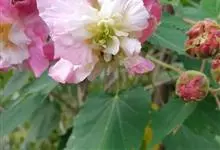 木芙蓉,锦葵科木槿属落叶灌木或小乔木。小枝上有细绒毛;叶片为卵状心形,托叶为披针形,常早落;花单生,花萼为钟形,花冠初为白色或淡红色,后逐渐变为深红色;果实为扁球形,有淡黄色的毛附着。花期8到10月。…全部>>
