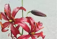 山丹是百合科百合属的多年生草本植物。鳞茎卵形或圆锥形,鳞片长圆形或长卵形,白色;叶散生茎中部,线形,边缘有乳头状突起;花单生或数朵成总状花序,花鲜红色,常无斑点,花被片反卷,…全部>>