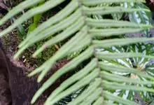 蜈蚣凤尾蕨是凤尾蕨科,凤尾蕨属陆生蕨类植物。植株高可达150厘米。根状茎直立,短而粗健,木质,密蓬松的黄褐色鳞片。叶簇生;柄坚硬,深禾秆色至浅褐色,叶片倒披针状长圆形,一回羽状;顶生羽片与侧生羽片同形,…全部>>