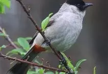 白喉红臀鹎是雀形目鹎科鹎属鸟类,又称红臀鹎、黑头公。额、头顶、枕、眼周和颊的前部黑色,具金属光泽;颊的后部和耳羽灰白色;后颈、颈侧和上体灰褐色,各羽均具浅色羽缘;腰羽及尾上覆羽灰褐色;颏与嘴角黑色,…全部>>