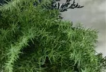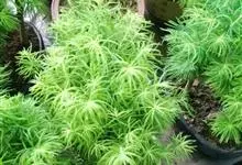 蓬莱松是天门冬科、天门冬属多年生丛生草本植物。宿存,圆柱形肉质根,纵截面为绿色和表面灰色。植株高可达3米。茎呈圆柱形或近四边形,底部木质化,具有灰色或灰褐色。幼嫩的茎在每个节上都被紫绿色鳞片包,…全部>>