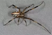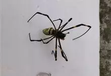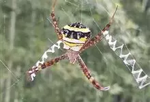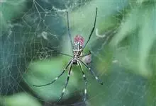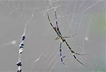 棒络新妇,是蜘蛛目肖蛸科络新妇属节肢动物。雄蛛体长约6毫米,背甲褐色,具黑色纵斑;步足黑色,有橙色环纹;腹部筒形、褐色,有黄斑;雌蛛体长约21毫米,背甲黑色,有大量银色长毛;触肢黄色,步足黑色,…全部>>