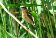 黑喉石鵖,雀形目鹟科石鵖属小型鸣禽,俗名谷尾鸟、黑喉石。其体色为黑褐色。雄鸟头部、背部、两翼及尾黑色,颈侧及翼上具白斑,胸部和腹侧红棕色,腰及尾下覆羽白色。雌鸟体色为褐色,上体具深色纵纹,胸部染棕色,…全部>>