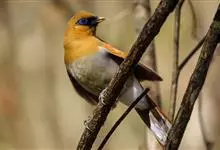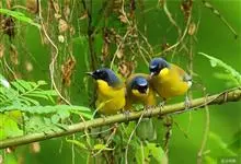黄喉噪鹛体型略小,顶冠蓝灰色,特征为具黑色的眼罩和鲜黄色的喉。上体褐色,尾端黑色而具白色边缘,腹部及尾下覆羽皮黄色而渐变成白色。黄喉噪鹛隐匿于亚热带常绿林和浓密灌丛,于地面杂物中取食,喜食昆虫,…全部>>