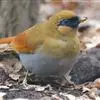 棕噪鹛中型鸟类,体长25~28厘米。上体赭褐色,头顶具黑色羽缘,尾上覆羽灰白色,尾羽棕栗色,外侧尾羽具宽阔的白色端斑。额、眼先、眼周、耳羽上部、脸前部和颏黑色,眼周裸皮蓝色,极为醒目。喉和上胸与背同色,…全部>>
