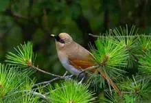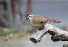 白颊噪鹛是雀形目噪鹛科噪鹛属鸟类,又称土画眉、小画眉、小噪鹃。成鸟额至头顶栗褐色,长眉纹、眼先和颊纹棕白色,眼后至耳羽深褐色,…全部>>