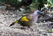 红头噪鹛中型鸟类,体长22~28厘米。头顶棕红色,眼先、脸、颏、喉黑色,上体橄榄色或棕橄榄褐色,外侧飞羽金黄色,尾羽基部亦为金黄色,下体多为暗橄榄褐色。该种和赤尾噪鹛较为相似,…全部>>