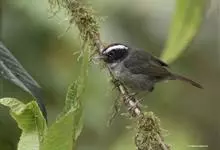 白眉雀鹛是鹟科、雀鹛属的鸟类。头顶暗灰褐色,有粗著白眉纹,眉纹上、下方又有宽阔黑纵纹;上体茶黄棕,翅表大部锈棕,翅外侧缀白;喉、胸部白色;腹部带茶黄色。…全部>>