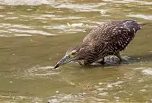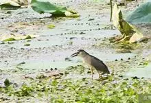 夜鹭是中型涉禽,体长46-60厘米。体较粗胖,颈较短;嘴尖细,微向下曲,黑色;胫裸出部分较少,脚和趾黄色;头顶至背黑绿色而具金属光泽;上体余部灰色;下体白色;枕部披有2-3枚长带状白色饰羽,下垂至背上,…全部>>