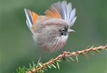 棕头雀鹛为鸦雀科,褐鹛属小型鸟类,体长10-13厘米。头顶栗褐色具黑色侧冠纹。上体茶黄色,飞羽外侧表面灰白色,内侧表面红棕色,内外二色之间夹有黑色。颏、喉白色具不明显的暗色纵纹,胸沾葡萄灰色,…全部>>