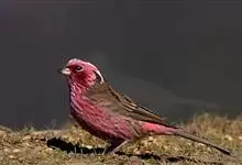 藏朱雀:全长约17-18厘米。雄鸟头部深红色具光辉,喉部暗红色具白色点斑;背部灰白色,各羽具玫瑰红色羽端,形成许多斑纹;腰部淡玫瑰红色;翅暗褐色,沾灰白,羽端沾玫瑰红或灰白色;尾暗棕色,端缘玫瑰红色…全部>>