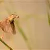 金头扇尾莺体小而具褐色纵纹的莺。嘴细长,略向下弯;翼短,体型娇小,尾长。下体皮黄,喉近白,尾深褐,尾端皮黄。雌雄羽色相近,羽色单调。繁殖期雄鸟顶冠亮金色,腰褐色。雌鸟及非繁殖期雄鸟头顶密布黑色细纹,…全部>>