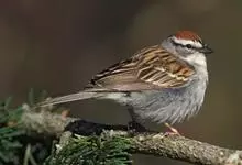 黑顶麻雀:为雀科麻雀属的鸟类。体重24-35克,体长144-167毫米,是一种中等体型的麻雀。繁殖期雄鸟头顶有黑色的冠顶纹至颈背,眼纹及颏黑,眉纹及枕侧棕褐,脸颊浅灰。上体褐色而密布黑色纵纹。…全部>>