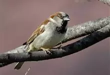 家麻雀:共有13个亚种。是小型鸟类,体长14-16厘米。背栗红色具黑色纵纹,两侧具皮黄色纵纹;颏、喉和上胸黑色,脸颊白色,其余下体白色,翅上具白色带斑。雄鸟与树麻雀的区别在顶冠及尾上覆羽灰色,耳无黑…全部>>