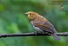 普通朱雀是雀形目雀科朱雀属鸟类,又名红朱雀、马料、青麻料。雄鸟上体红色,下体淡红色;头部、喉部、胸部及腰部亮红色;背部褐色染红色;两翼及尾黑褐色,羽缘染红色。雌鸟上体橄榄褐色,下体近白色,…全部>>