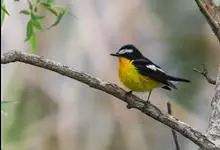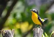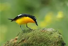 白眉姬鹟是小型鸟类,体长11-14厘米。雄鸟上体大部黑色,眉纹白色,在黑色的头上极为醒目。腰鲜黄色,两翅和尾黑色,翅上具白斑。下体鲜黄色。雌鸟上体大部橄榄绿色。腰鲜黄色,翅上亦具白斑。下体淡黄绿色。…全部>>