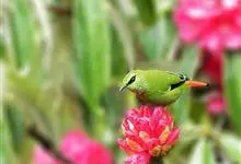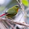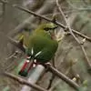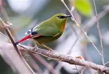 火尾绿鹛是莺科、绿鹛属小型鸟类,体长11-14厘米。上体绿色,头顶至枕具黑色鳞状斑,眼先和眼后黑色,眉纹黄绿色。两翅黑色具黄色和红色翅斑及白色端斑,极为醒目。中央一对尾羽绿色,外侧尾羽鲜红色。…全部>>