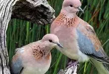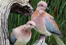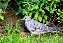 珠颈斑鸠,别名花斑鸠、珍珠鸠、花脖斑鸠、鸪鹪,是鸠鸽科副斑鸠属鸟类。体型中等,体长27~34cm,体重120~205g,雌鸟和雄鸟羽色相似,但雌鸟不如雄鸟羽色亮泽。珠颈斑鸠前额至头顶羽色稍淡,…全部>>