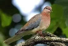 棕斑鸠,是鸽形目鸠鸽科斑鸠属鸟类。整个头和颈淡粉红色,头顶和前额较暗,颊、喉较淡,前颈基部两侧羽毛黑色具宽阔的棕色端斑,使前颈两侧形成黑色斑点状的黑斑。…全部>>