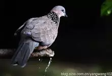 珠颈斑鸠,别名花斑鸠、珍珠鸠、花脖斑鸠、鸪鹪,是鸠鸽科副斑鸠属鸟类。体型中等,体长27~34cm,体重120~205g,雌鸟和雄鸟羽色相似,但雌鸟不如雄鸟羽色亮泽。珠颈斑鸠前额至头顶羽色稍淡,…全部>>