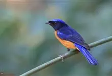 棕腹大仙鹟:体重24-28克,体长15-17厘米,是一种小型的色彩亮丽的鹟。雄鸟上体深蓝,下体棕色,脸黑,额、颈侧小块斑、翼角及腰部亮丽闪辉蓝色。与棕腹仙鹟易混淆,区别在色彩较暗。雌鸟灰褐,…全部>>