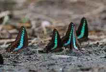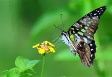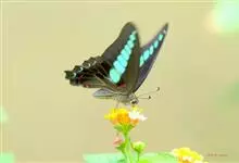 青带凤蝶Graphium sarpedon ,又名青凤蝶,是最普遍的中型凤蝶,飞行速度很快。青带凤蝶的翅膀中央有许多浅蓝色的斑点,很整齐地排列成一条直线。这些斑点由上而下逐渐变大,就像一条青色的带子。全部>>