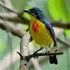 红胸啄花鸟:体重5-10克,体长60-92毫米。体形纤小。雄鸟上体呈辉亮的金属绿色;下体棕黄,胸部具一朱红色块斑,极易与其他啄花鸟区别。雌鸟上体呈橄榄绿,下体棕黄色。虹膜褐色,嘴褐黑色或角灰色,…全部>>