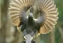 琴鸟,是雀形目琴鸟科琴鸟属底栖型鸟类。体型较大,通体浅褐色;雄鸟有长达70厘米,宽3.5厘米的竖琴形美丽尾羽,最外侧的尾羽先端外卷成弧形,上缀金褐色冠状斑;边缘黑色,…全部>>