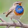 蓝点颏亦称“蓝喉歌鸲”,通称蓝靛颏儿。身体大小和麻雀相似,体长12-13厘米,体重17-18克。头部、上体主要为土褐色。眉纹白色。尾羽黑褐色,基部栗红色。颏部、喉部辉蓝色,下面有黑色横纹。下体白色。…全部>>
