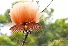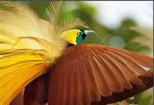 大极乐鸟是极乐鸟属中最大的鸟种。成年雄鸟体长可达到43厘米,雌性可达35厘米。雄鸟的额、颊、喉等墨绿色;头、颈黄色;上体暗赤栗色;腹部葡萄红色,胁部有长饰羽,其基部橙黄,中部黄色,…全部>>