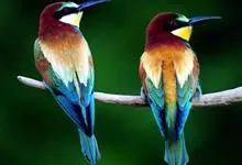 栗喉蜂虎是蜂虎科蜂虎属的鸟类。有热带鸟类羽毛艳丽的特征:喉部是栗红色的,黑色的过眼纹,翅膀和背部是绿色的,尾翼是蓝色的,飞行时翅膀下面的羽毛是橙黄色的,在阳光的照射下,它们全身闪烁着金属般的艳丽光泽,…全部>>