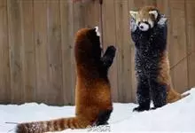 小熊猫:是小熊猫科、小熊猫属的一种动物。雌雄相似,不存在二态性。外形像猫,但较猫肥大,全身红褐色。圆脸,吻部较短,脸颊有白色斑纹。耳大,直立向前。四肢粗短,为黑褐色。尾长、较粗而蓬松,…全部>>