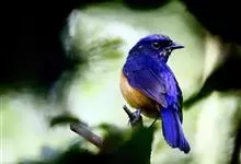 棕腹大仙鹟:体重24-28克,体长15-17厘米,是一种小型的色彩亮丽的鹟。雄鸟上体深蓝,下体棕色,脸黑,额、颈侧小块斑、翼角及腰部亮丽闪辉蓝色。与棕腹仙鹟易混淆,区别在色彩较暗。雌鸟灰褐,…全部>>