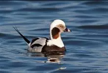 长尾鸭体长约58厘米,是中等体型的灰、黑及白色鸭,中央尾羽特长,雄鸟胸部的黑色斑块为特征。分布范围遍及全北界。 是一种非常罕见的冬候鸟。繁殖期主要栖息于北极冻原上的水塘和小型湖泊中,…全部>>