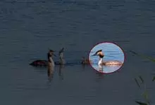 棕硬尾鸭是属于鸭科的非常典型的一种群居型水鸭。体长36-40厘米,翼展53-60厘米,体重560-590克。有个大头,短颈,宽嘴,和长尾。公鸭黑色帽子从眼睛延伸到后颈,整年都有白面颊,…全部>>