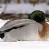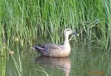 绿头鸭属游禽,大型鸭类。体长47-62厘米,体重大约1千克,外形大小和家鸭相似。雄鸟嘴黄绿色,脚橙黄色,头和颈辉绿色,颈部有一明显的白色领环。上体黑褐色,腰和尾上覆羽黑色,两对中央尾羽亦为黑色,且向…全部>>