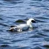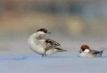 斑头秋沙鸭,是鸭科、斑头秋沙鸭属鸟类。雄鸟眼先和眼周黑色,成块斑状;头部其余部分全为白色。颈白色;背黑色,上背最前处的白羽具有黑端,相连而成两条半圆环狭带。下体白色,体侧羽毛具黑褐色波状细纹。…全部>>