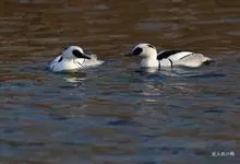 斑头秋沙鸭,是鸭科、斑头秋沙鸭属鸟类。雄鸟眼先和眼周黑色,成块斑状;头部其余部分全为白色。颈白色;背黑色,上背最前处的白羽具有黑端,相连而成两条半圆环狭带。下体白色,体侧羽毛具黑褐色波状细纹。…全部>>