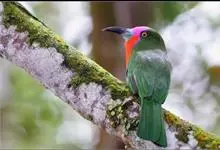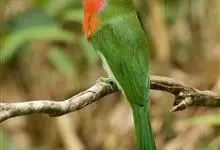 蓝须夜蜂虎是佛法僧目、蜂虎科的鸟类,体长约30厘米,是绿色林栖型蜂虎,蓝色的胸羽蓬松,嘴厚重而下弯。成鸟顶冠淡蓝,腹部棕黄带绿色纵纹。尾羽腹面黄褐。亚成鸟全身绿色。喉、胸部中央的羽甚长和亮色;该物种…全部>>