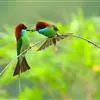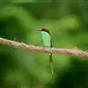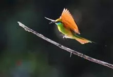 绿喉蜂虎是佛法僧目、蜂虎科的小型鸟类,共有9个亚种。身长22-25厘米,翼展29-30厘米,体重15-20克。喉绿色,额部、头顶至上背为锈红色,其余上体均为亮绿色。中央尾羽延长且端段狭细,…全部>>