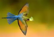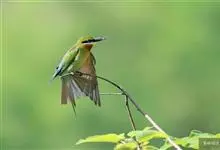 蓝颊蜂虎:是蜂虎科、蜂虎属的鸟类,共有2个亚种。体长27-33厘米,翼展46-49厘米,体重38-50克。嘴形细长而下弯,先端尖,…全部>>
